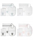 Accappatoio triangolo in spugna con cappuccio in piquet bianco, bubino ricamato e bordi in contrasto.