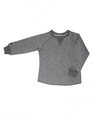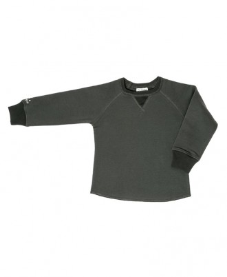 La felpa girocollo è rifinita da cuciture e taglio a vivo. Il pantalone con elastico in vita è arricchito da due tasche sul davanti e una sul dietro.